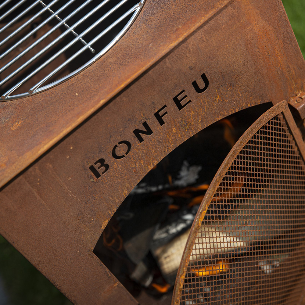 BonFeu BonCarré è uno dei camini da giardino di taglia media della gamma BonFeu: un modello multifunction e un vero valore aggiunto per patio e giardino. Si distingue dalla maggior parte dei camini BonFeu per il suo design con quattro gambe e corpo square. La struttura è protetta da una verniciatura resistente al calore e include un parascintille removibile, utile per evitare che i ciocchi cadano e per ridurre la dispersione di scintille. Come per molti altri modelli BonFeu, anche con BonCarré è possibile cucinare.