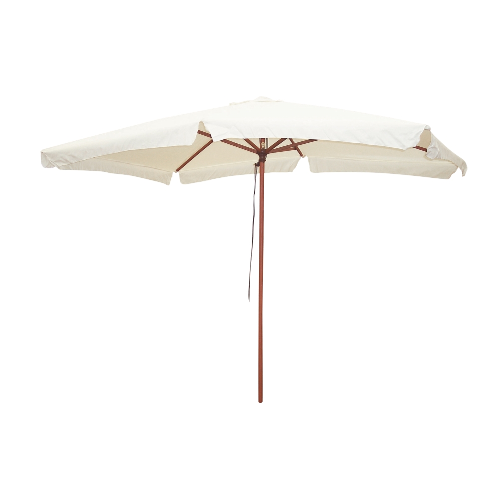 Deluxe 2×3 Wooden Umbrella with wooden pole. Opening and closing via rope and wooden slat frame. The cloth is ecru in colour. Practical shading structure, economical and perfect for your garden or terrace.
