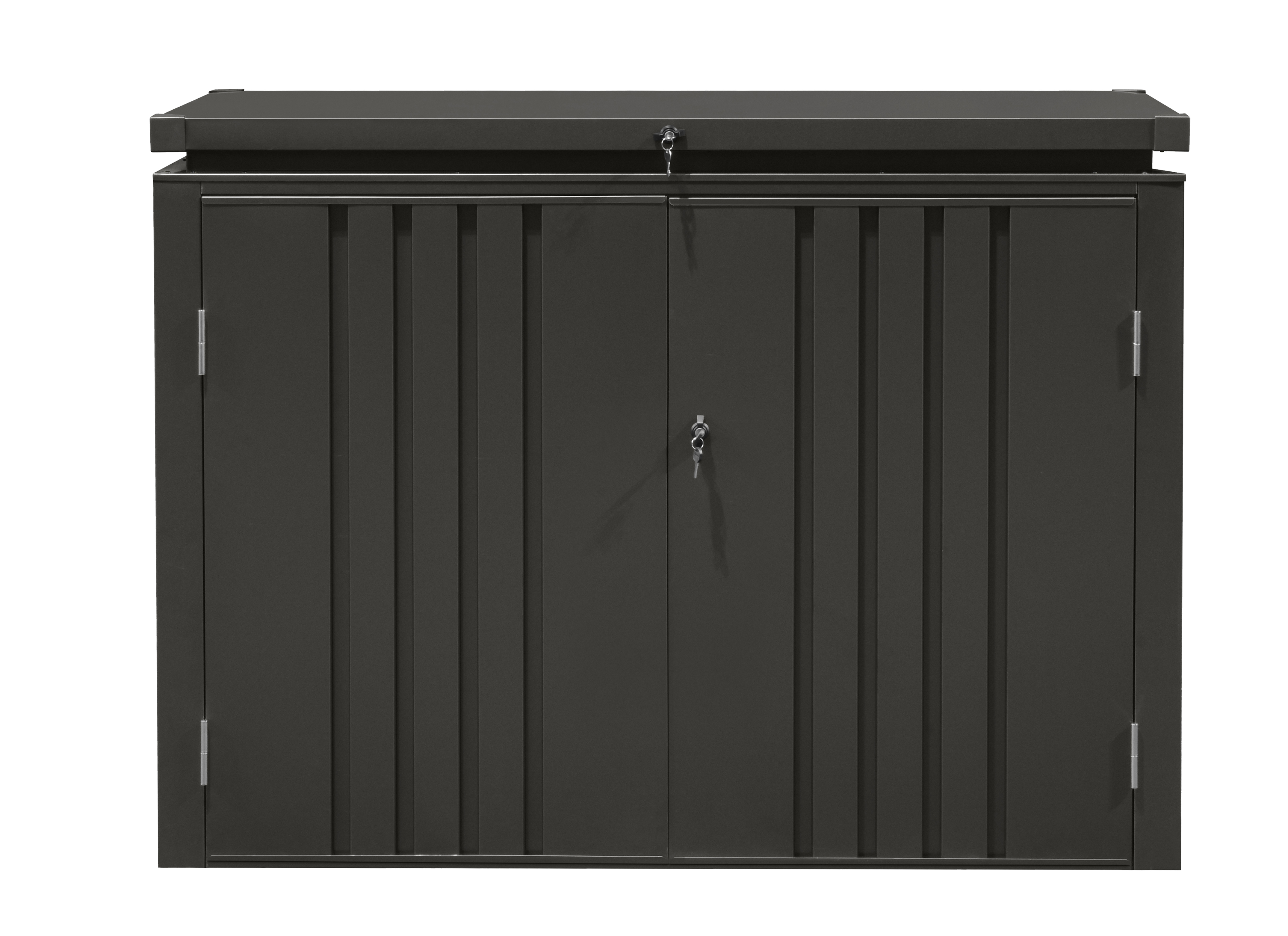 - Dimensioni: Il box misura 160 cm di larghezza, 70 cm di profondità e 119 cm di altezza, offrendo ampio spazio per il deposito di vari materiali.