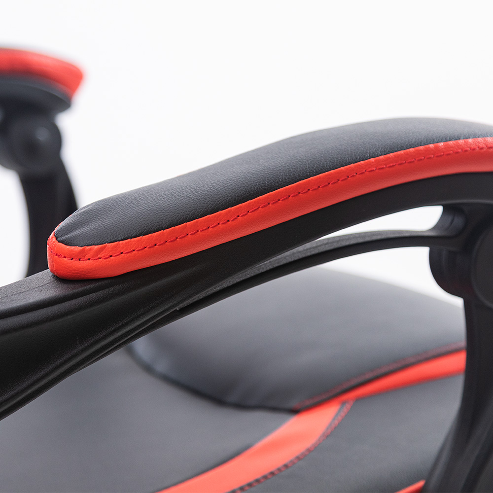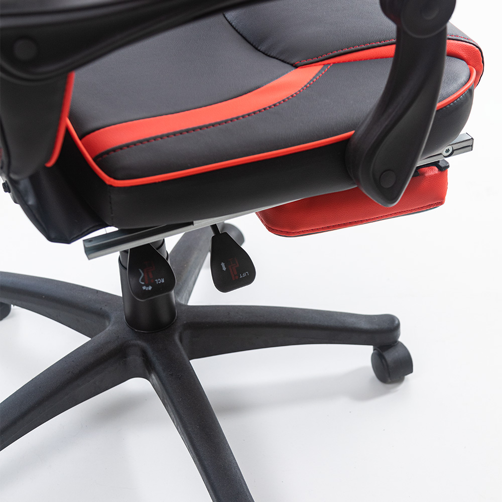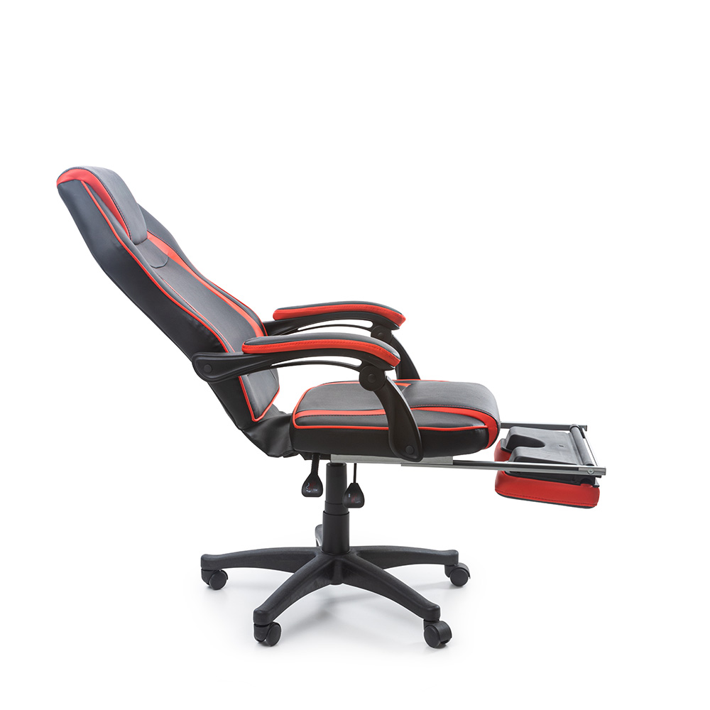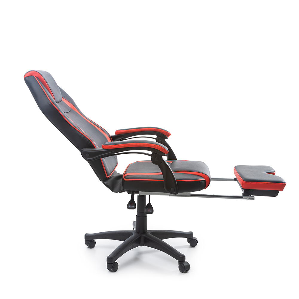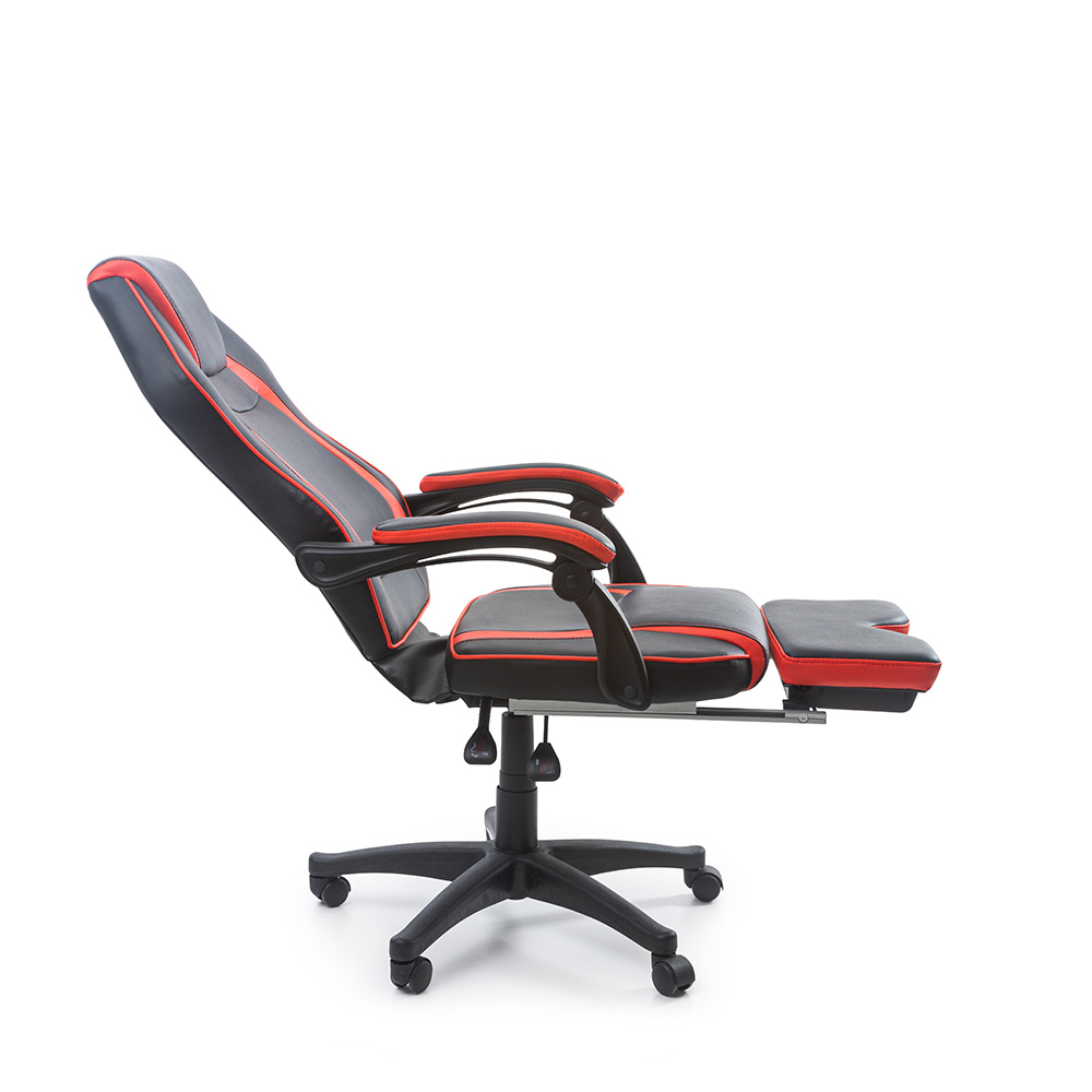 Sedia gamer pilota power, color nero, con inserti rossi. In ecopelle, con poggiapiedi estraibile imbottito. Dotata di braccioli e ruote, è inoltre egolabile in altezza. Adatta sia come poltrona da scrivania che come sedia da gamer.
