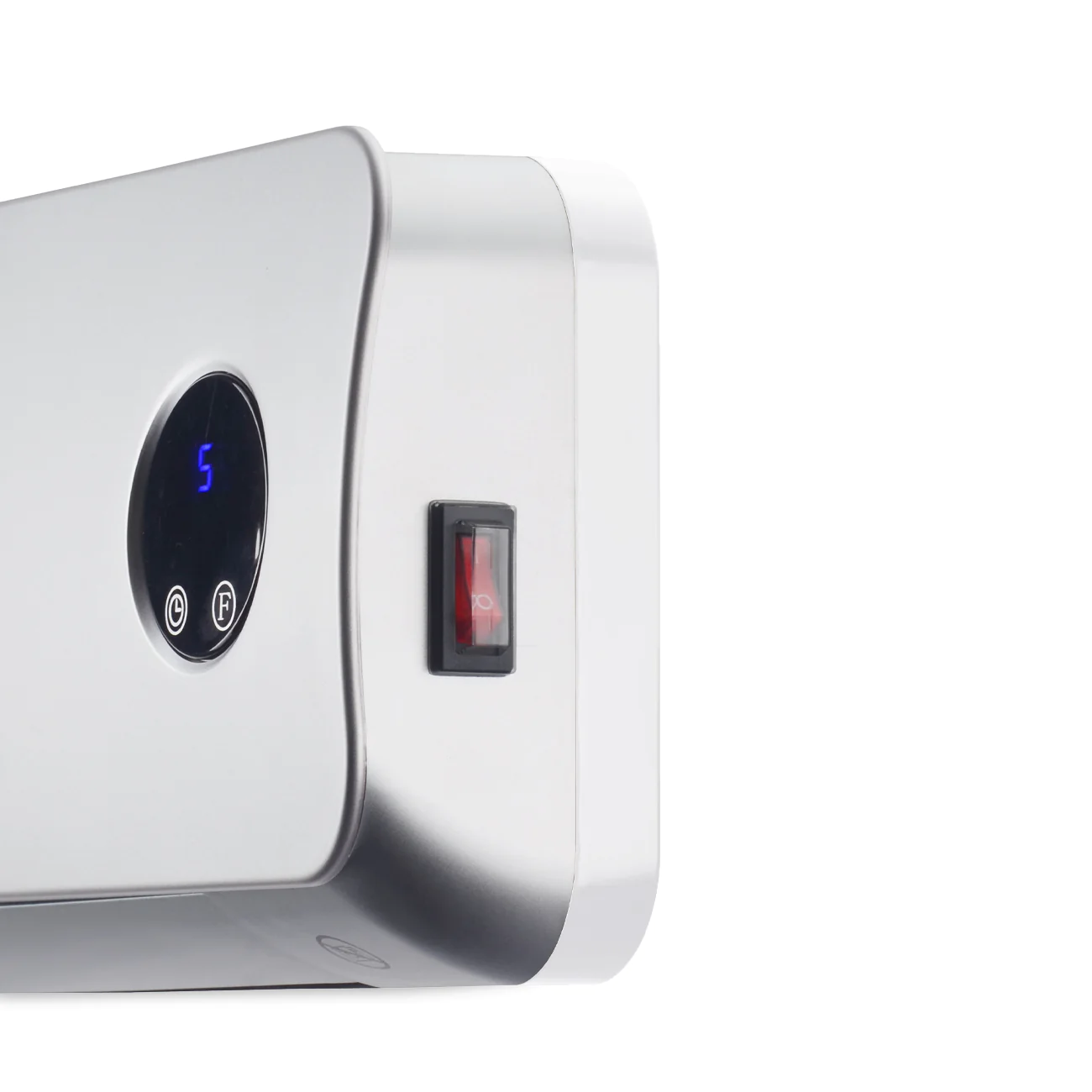 Riscaldamento intelligente e design raffinato si fondono nel nostro Termoventilatore a Parete, ideale per il tuo bagno. Montabile con facilità, questo scaldasalviette, controllabile tramite il telecomando “slim” a infrarossi incluso, offre una soluzione di riscaldamento personalizzata.